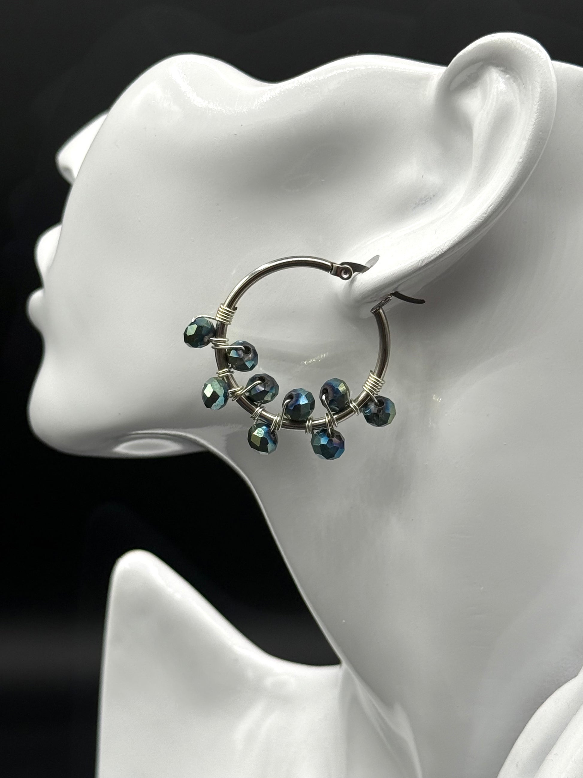 Argollas de acero inoxidable en técnica de alambrismo con cristales checos.