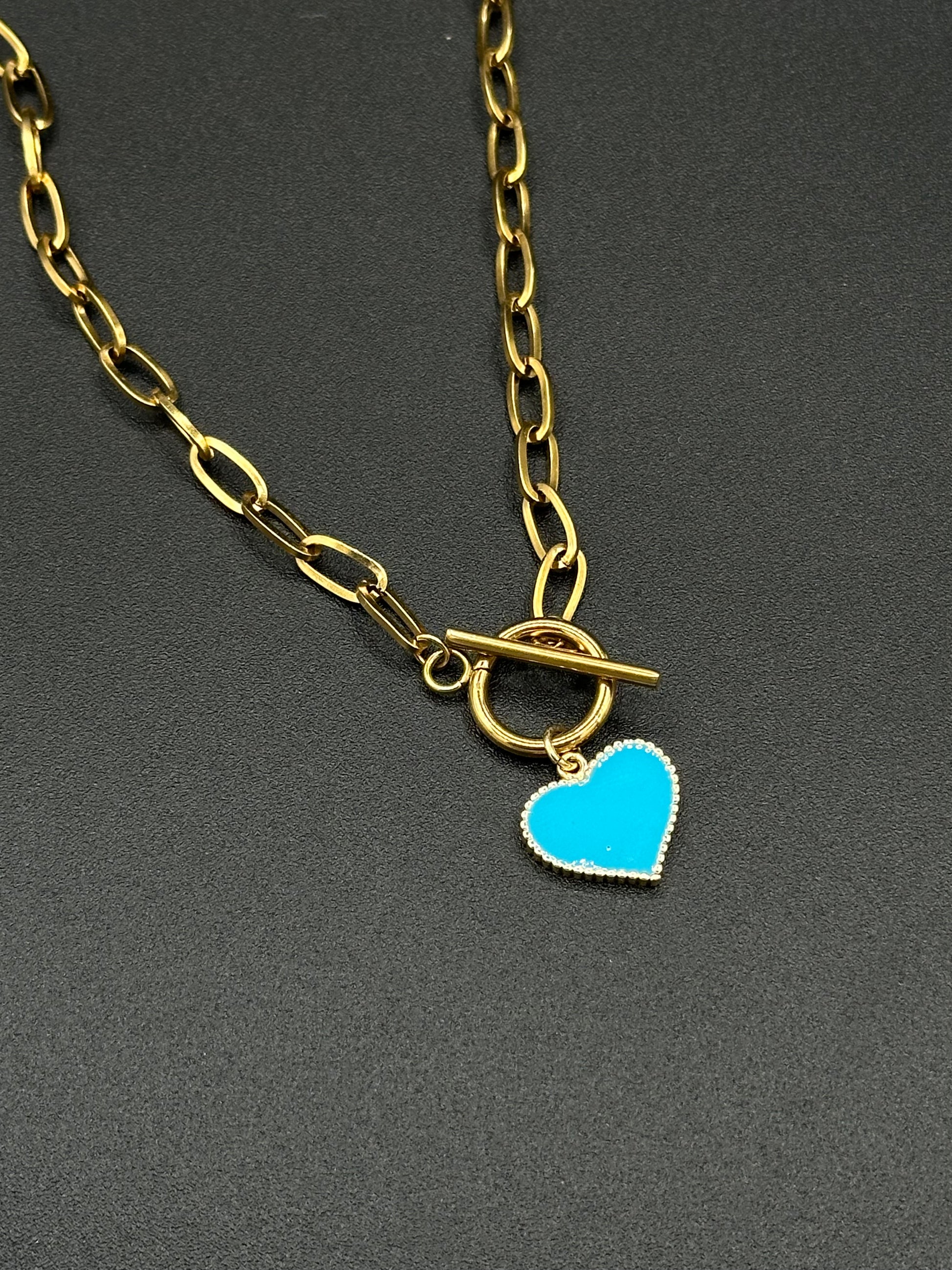 Collar de acero inoxidable con dije de bronce con baño de oro.