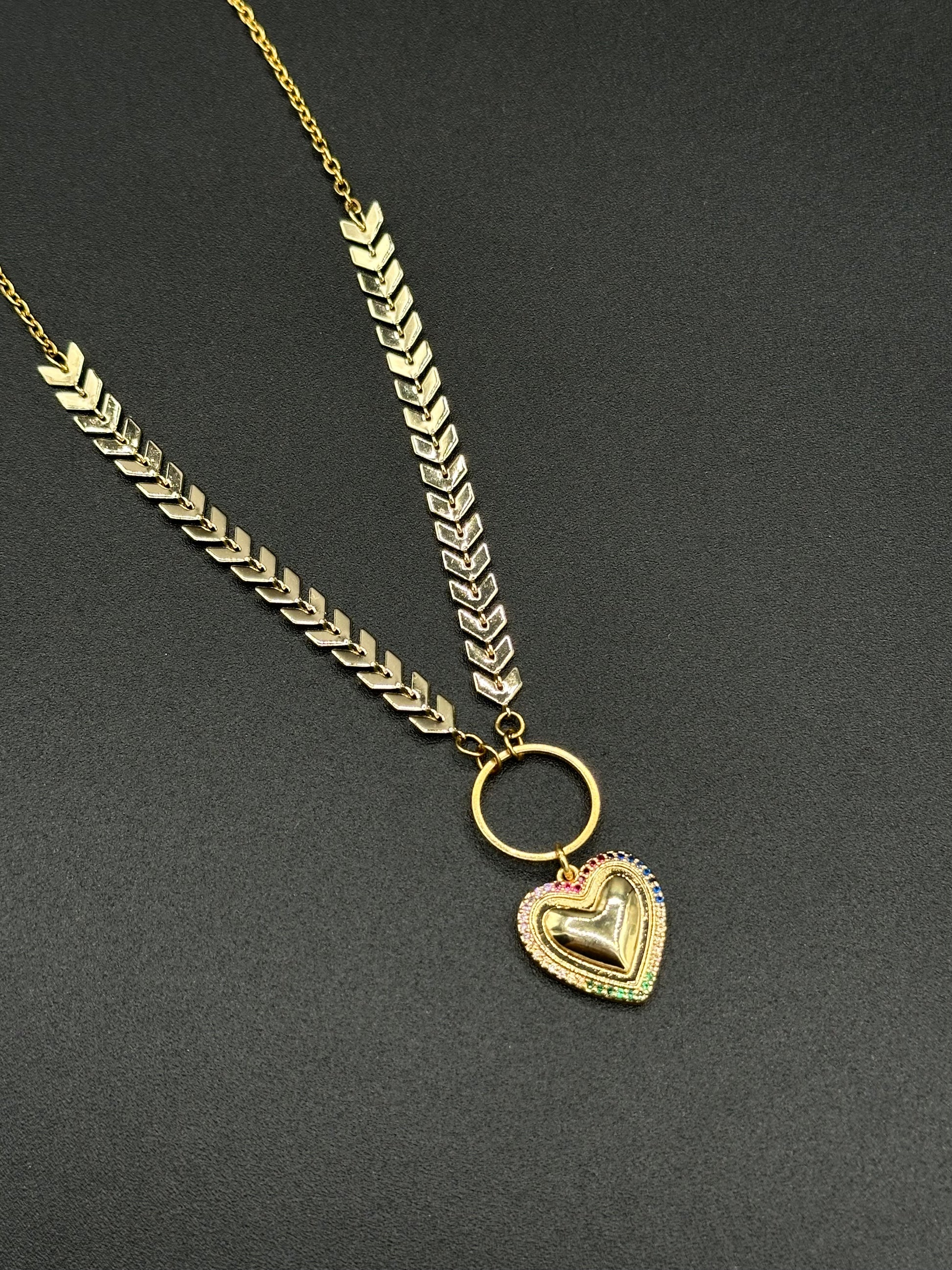 Collar de acero inoxidable con dije de bronce con baño de oro.