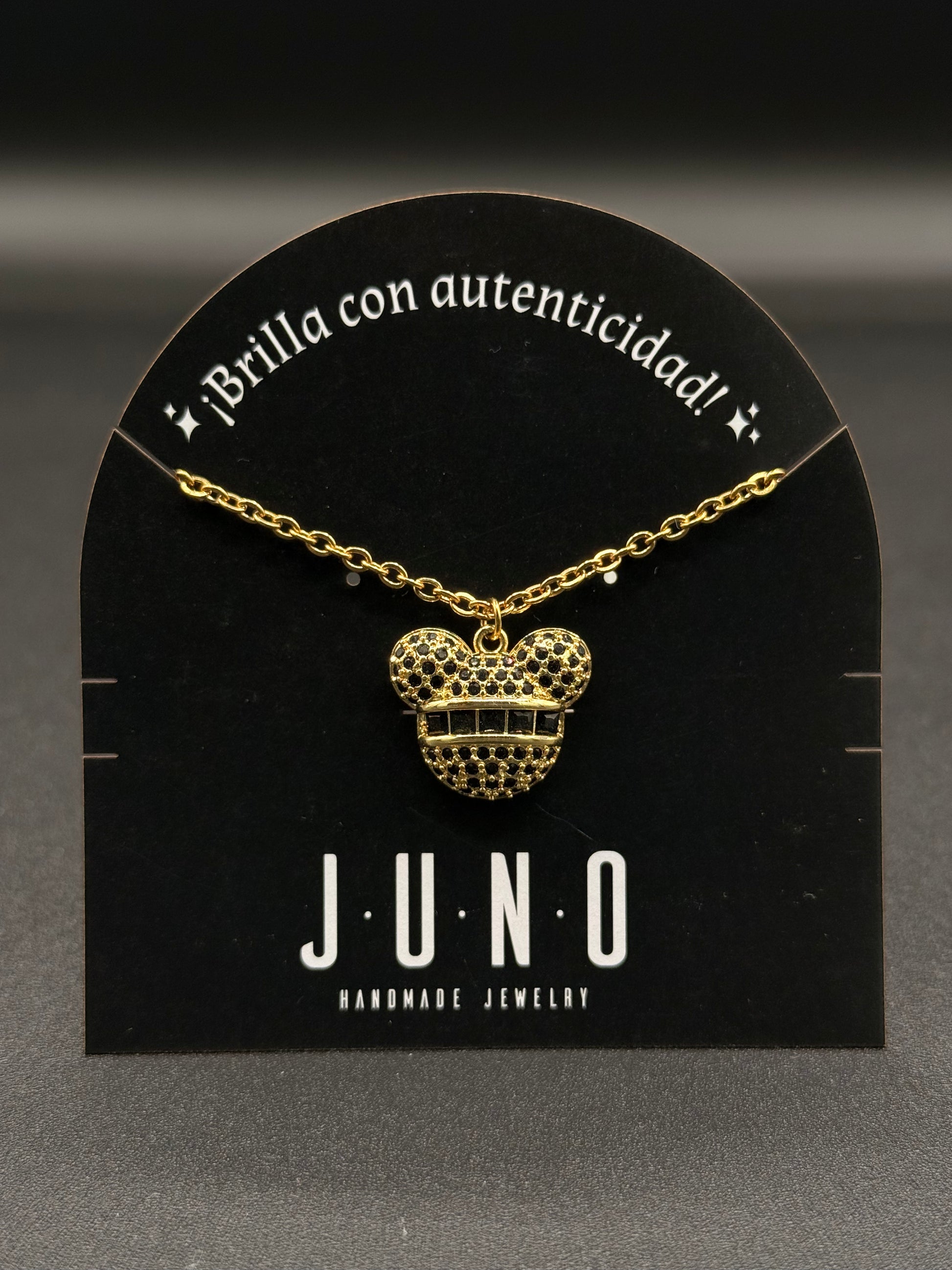 Collar de acero inoxidable con dije de bronce con baño de oro.