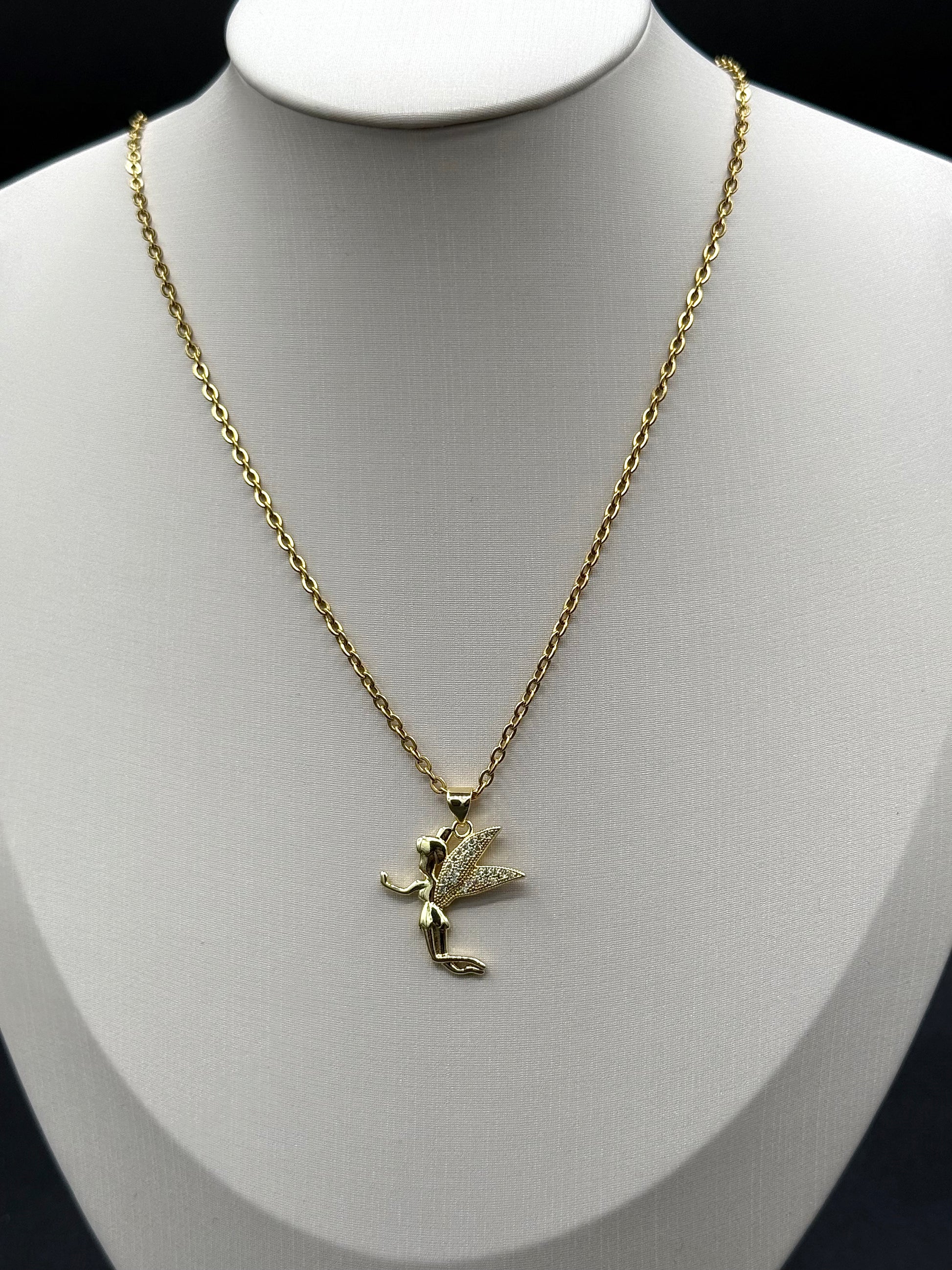 Collar de acero inoxidable con dije de bronce con baño de oro.