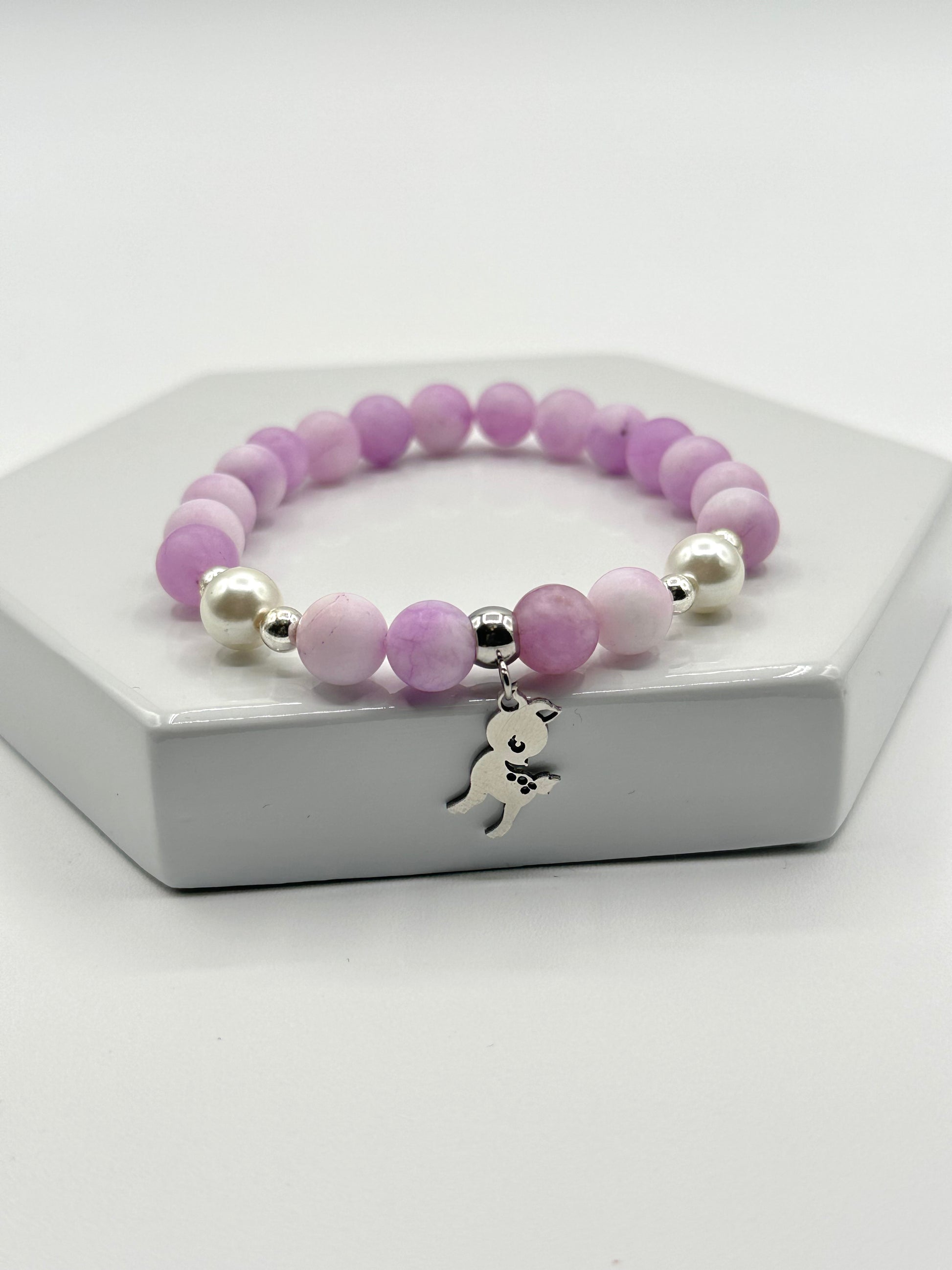 Pulsera de piedras naturales jade, perlas nácar, hematites y dije de acero inoxidable.